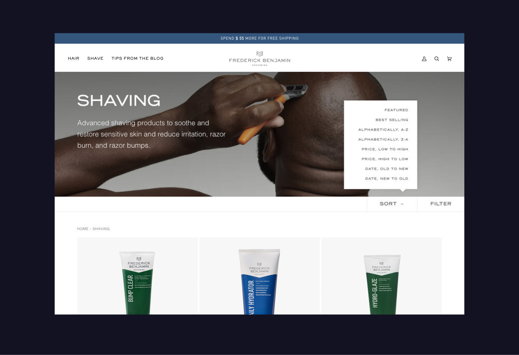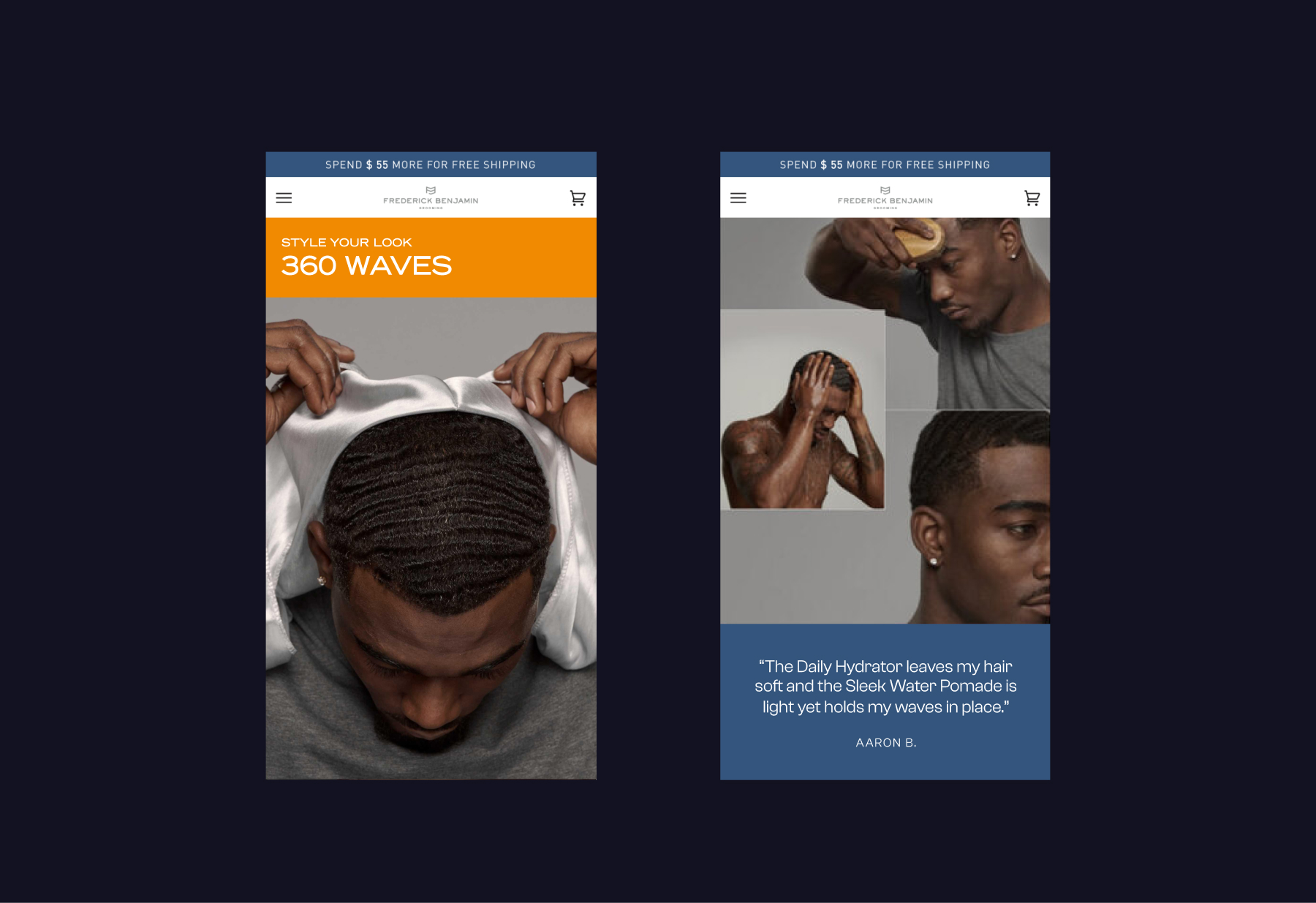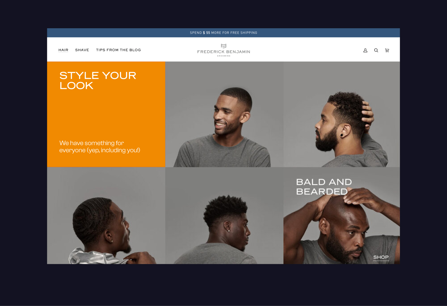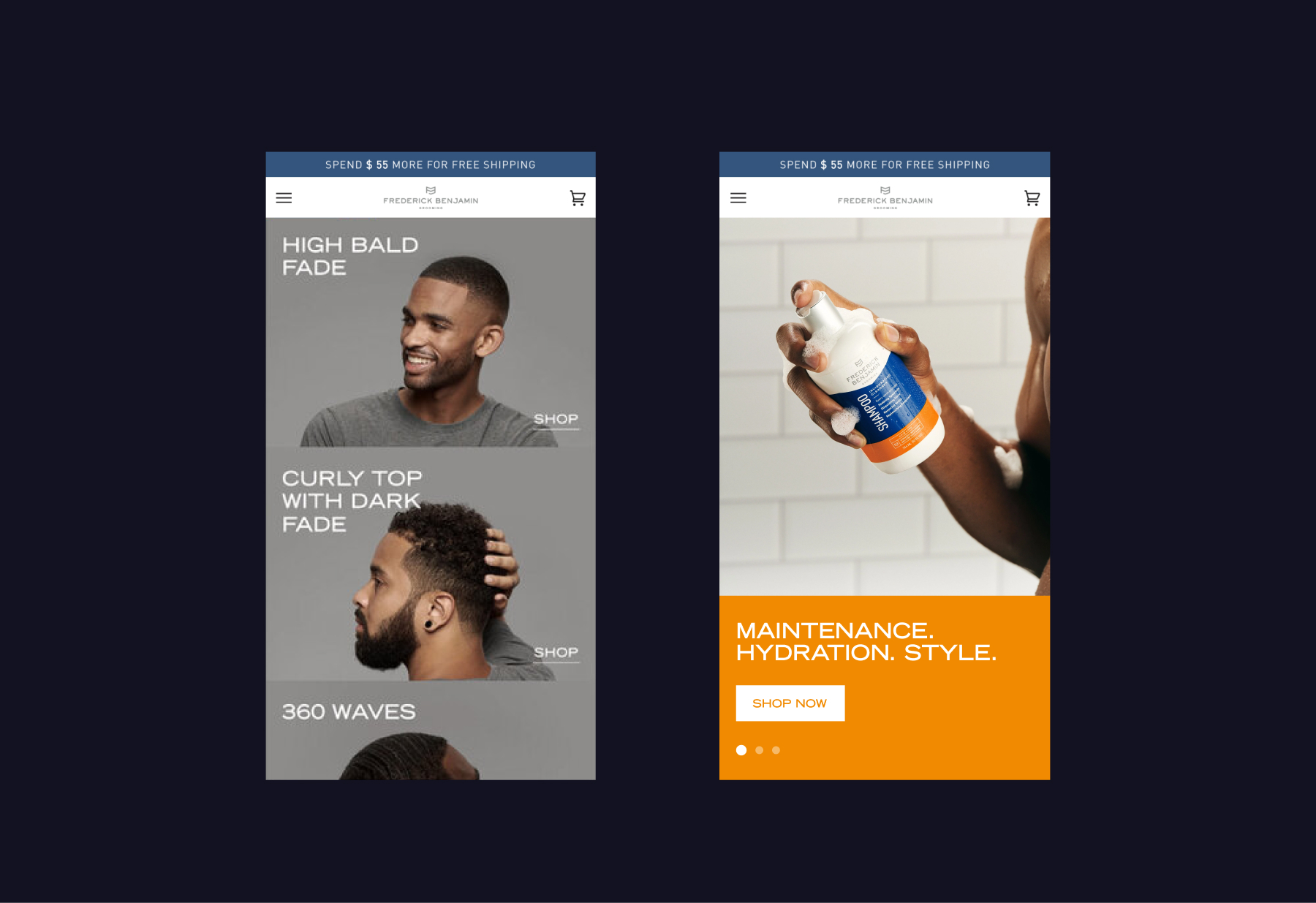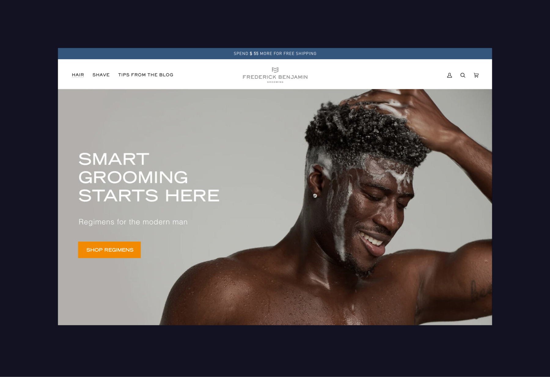 The intention from the start was to ensure that the Frederick Benjamin brand had a clean, refined look directly comparable with some highly successful benchmark brands in the men’s grooming space. With the company’s target audience in mind, cool was the key to conversions.